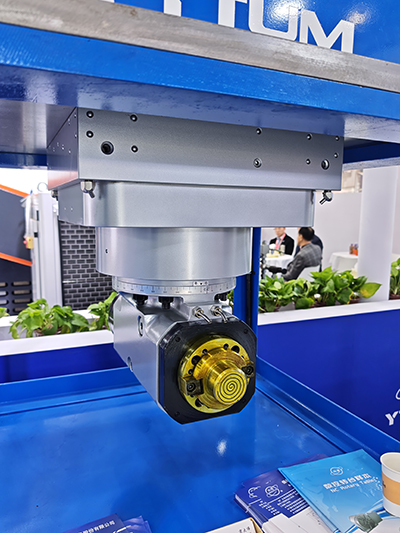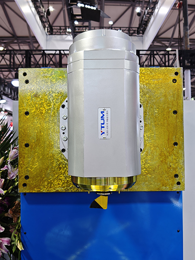 KJBD-6354S-YS加強(qiáng)型B軸動力刀架作為五軸車銑復(fù)合加工中心的核心功能部件,采用兩端定位支撐結(jié)構(gòu),整體剛性優(yōu)異,可適配高速、重載加工工況,廣泛應(yīng)用于斜床身模擬Y軸結(jié)構(gòu)的車銑復(fù)合機(jī)床。產(chǎn)品由B軸回轉(zhuǎn)機(jī)構(gòu)與切削主軸組成,B軸采用大扭矩力矩電機(jī)驅(qū)動,最大輸出扭矩1050Nm,。主軸搭載集成車削功能的高速電主軸,最高轉(zhuǎn)速12000r/min,最大輸出扭矩214Nm。兩軸均搭配高精度齒盤與角度編碼器,分度精度±5″,重復(fù)定位精度±1″,可實(shí)現(xiàn)固定角度與任意角度定位鎖緊,可全面滿足車銑復(fù)合加工需求。在主機(jī)系統(tǒng)聯(lián)動控制下,可實(shí)現(xiàn)工件一次裝夾完成直線、圓弧、斜線及各類螺紋等精密加工,具備高剛性、高精度、運(yùn)行穩(wěn)定等優(yōu)勢,是五軸車銑復(fù)合加工中心的優(yōu)選配套部件。